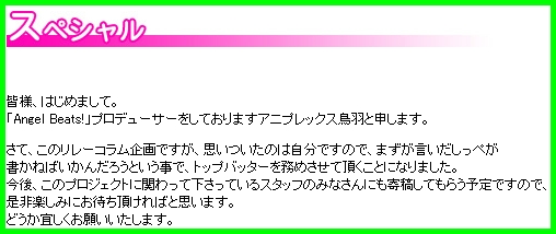 「Angel Beats!」のスタッフリレーコラムがついにスタートしました。